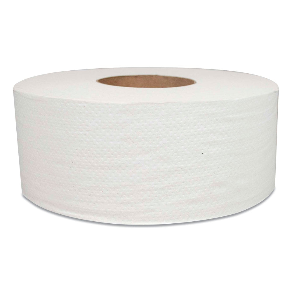 Morcon's Jumbo Roll Tissue is the perfect option for any business looking for quality paper at an affordable cost. Keep restrooms fully stocked with smooth and absorbent value-priced tissue, ideal for high-traffic venues. Since JRTs last longer than your average size roll, this reduces run-outs and changeovers, helping you save on maintenance costs. Made entirely from recycled material meeting EPA guidelines for post-consumer content. Fits most universal JRT jumbo-roll tissue dispensers.